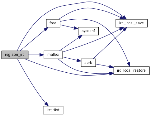 References list::cnt, irq_handler::data, ENOMEM, free(), irq_handler::handler, list::head, irq_handler::head, list::idx, irq_local_restore(), irq_local_save(), list::list, list_entry, list_for_each, malloc(), list::max_priority, NULL, and irq_handler::priority.