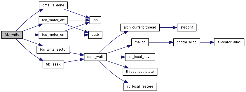 이 함수 내부에서 호출하는 함수들에 대한 그래프입니다.:| int fdc_write | ( | int | handle, |
